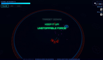 You are the last strike unit in a collapsing neural network. Corrupted data-forms are closing in from every direction. Your weapons are charged. Your signal is fading. Fight until the grid is clean or you are gone.